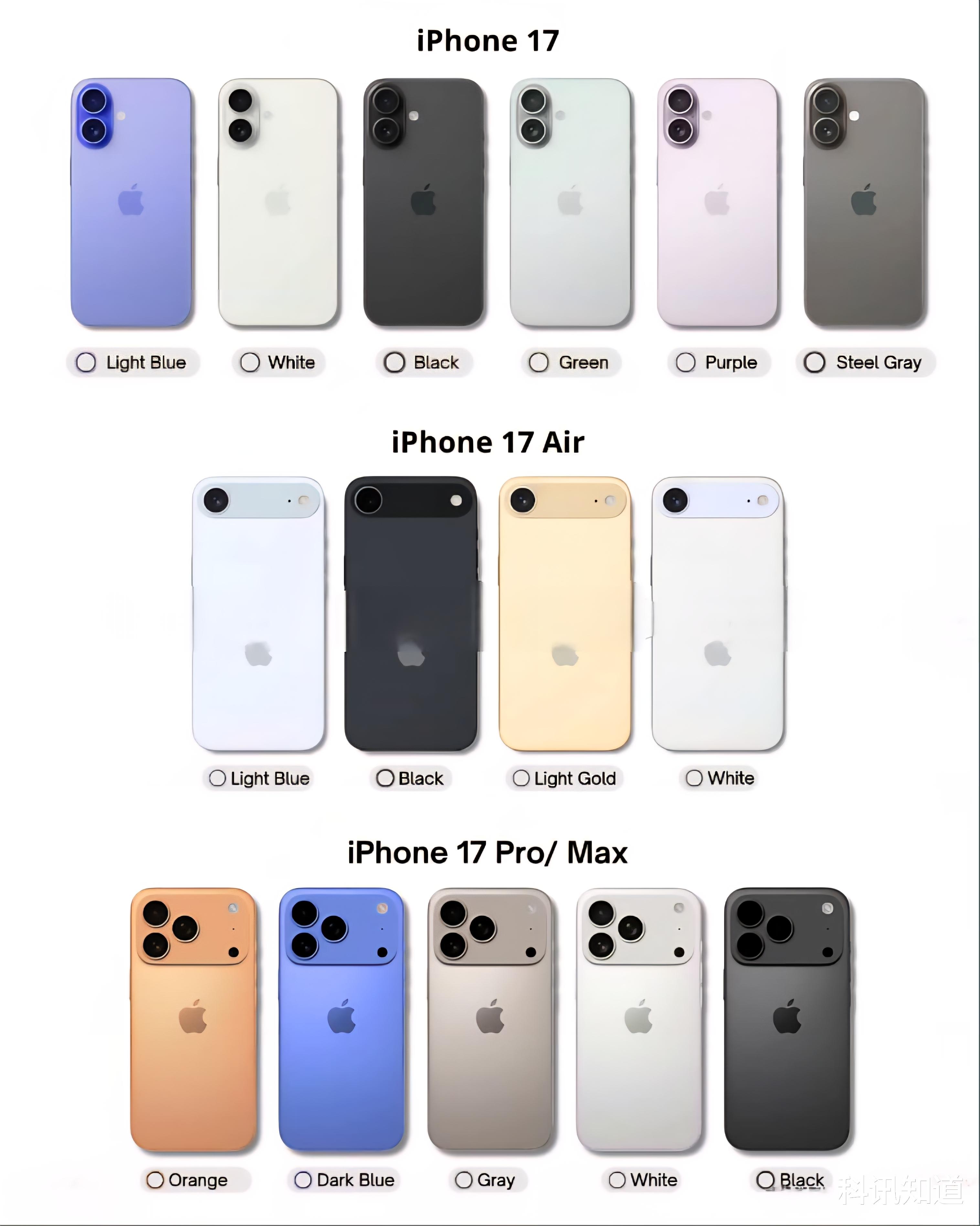 • iPhone 17 Pro:钛金属中框,48 MP三摄,A19 Pro芯片,性能怪兽。
