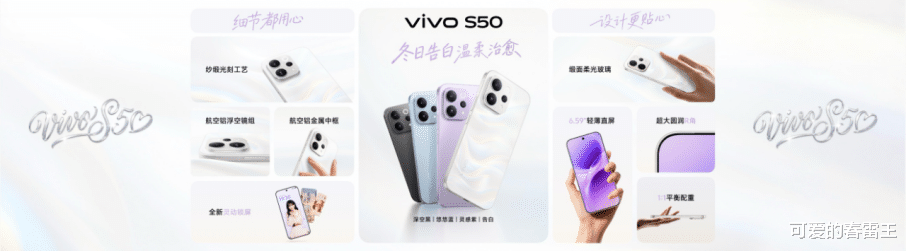 全新的 vivo S50系列以色彩与工艺,进一步诠释“我喜欢我,每秒都生动”的态度。S50系列带来全新「告白」配色,在缎面柔光玻璃背板上引入全新纱缎光刻工艺,呈现白里透金的细腻光泽,观感更柔和、触感更温润且不易沾染指纹,如冬日暖阳般温柔治愈。仿佛将一份触手可及的温柔握在掌心,提醒我们在纷繁世界中,依然可以留出一份温柔,去拥抱那个独一无二的自己。在「告白」之外,vivo S50 还提供灵感紫、悠悠蓝、深空黑三种配色,vivo S50 Pro mini 精选告白、灵感紫、深空黑三款配色,覆盖从治愈浪漫到沉稳内敛的多彩选择。