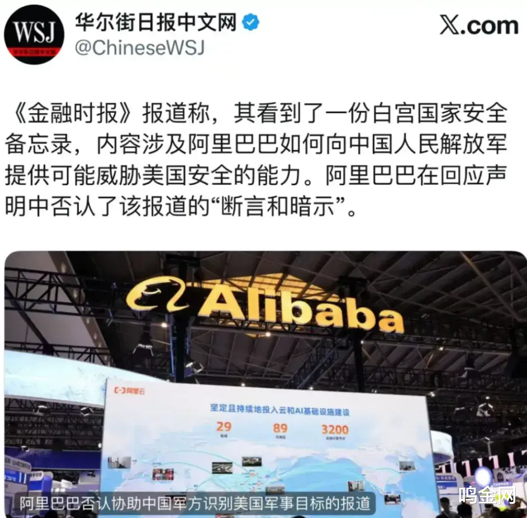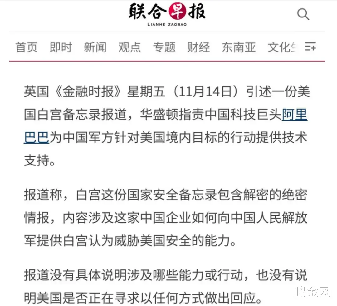 因为这篇报道的内容太过惊悚,其援引一份所谓的白宫国家安全备忘录中已解密的绝密情报称,阿里巴巴为中国军方针对美国目标的“行动”提供了数据支持,其活动威胁到了美国国家安全。