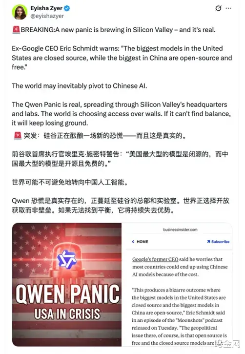 难怪大批美国企业一边用着阿里的模型喊着“真香”,一边心不由衷的给白宫吹风:美国的AI底层技术已被阿里严重渗透,硅谷在相关技术上已被阿里空心化,这动摇了美国自身的技术根基。