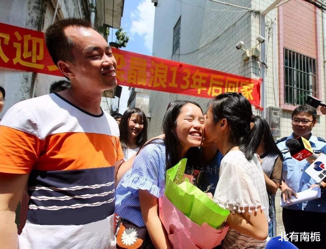 很快梁晶浪和养母笑着走了出来,她远远地就看到了等候多时的家人,她轻轻地挥了挥手。