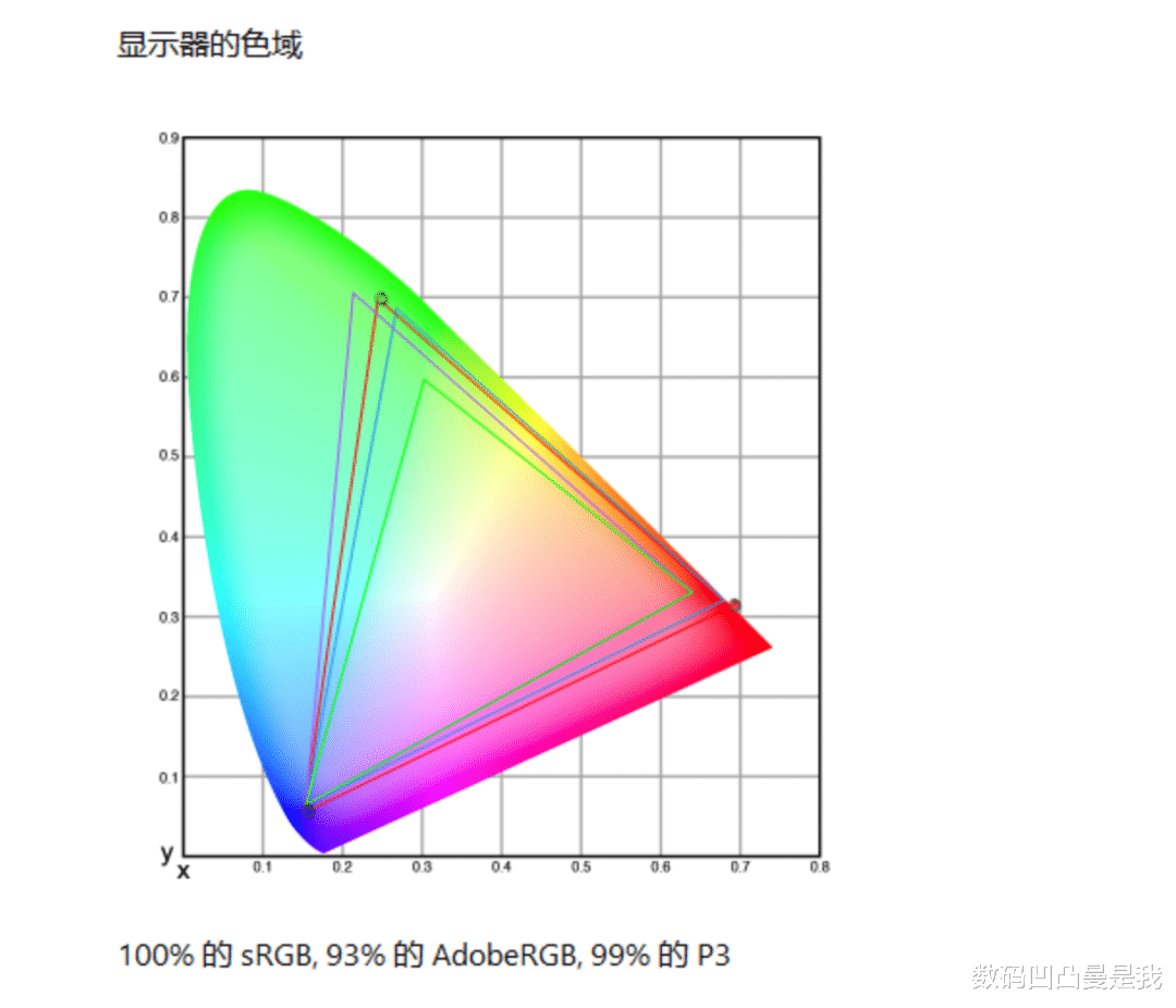 至于色域,官方标称为覆盖92% DCI-P3色域,但实测色域覆盖为100% sRGB、99% DCI-P3,比官方标称值还要高出不少,属于正宗的广色域屏,色彩表现更加丰富、正式,专业创作和游戏娱乐都能满足。