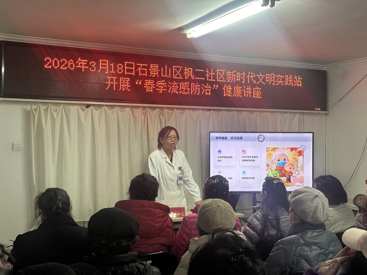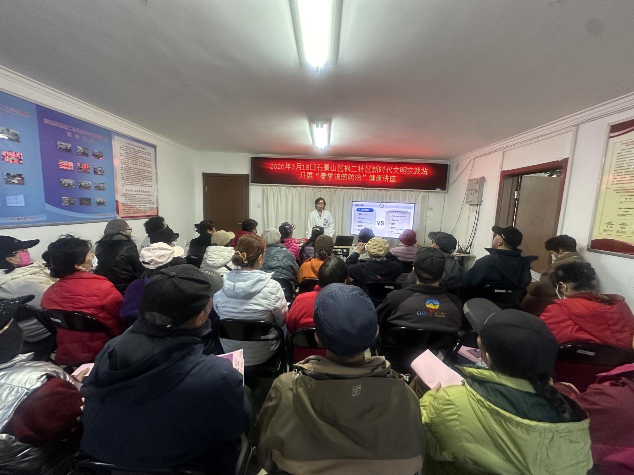 春日悄至,万物焕新,然而春季也是各类传染病的高发期。日前,苹果园社区卫生服务中心携手医联体单位北京大学首钢医院老年医学科的陈锦文医生,走进西山枫林第二居委会,为居民普及流感预防知识。