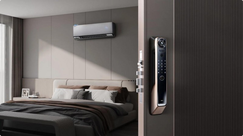 安全与舒适是租住体验的基础,TCL通过智能硬件的场景化应用,为租客构建安心、宜居的居住环境。智能门锁集成指纹识别、密码解锁等多元验证方式,同时具备试错锁定、异常开门提醒等功能,有效提升居住安全感。刚搬入新公寓的租客,往往担忧装修残留的甲醛与PM2.5污染。小蓝翼新风空调搭载双混动新风系统,同时具备PM2.5高效过滤、温湿度自动调节功能。针对租住空间常见的空气不流通、甲醛残留等问题,新风模式可在不开窗的情况下完成室内外空气交换,减少有害物质积累;夜间睡眠时,空调自动切换至静音模式,风速柔化、温度恒定,既避免了开窗带来的噪音干扰,又保证了室内空气清新,让租客一夜好眠。