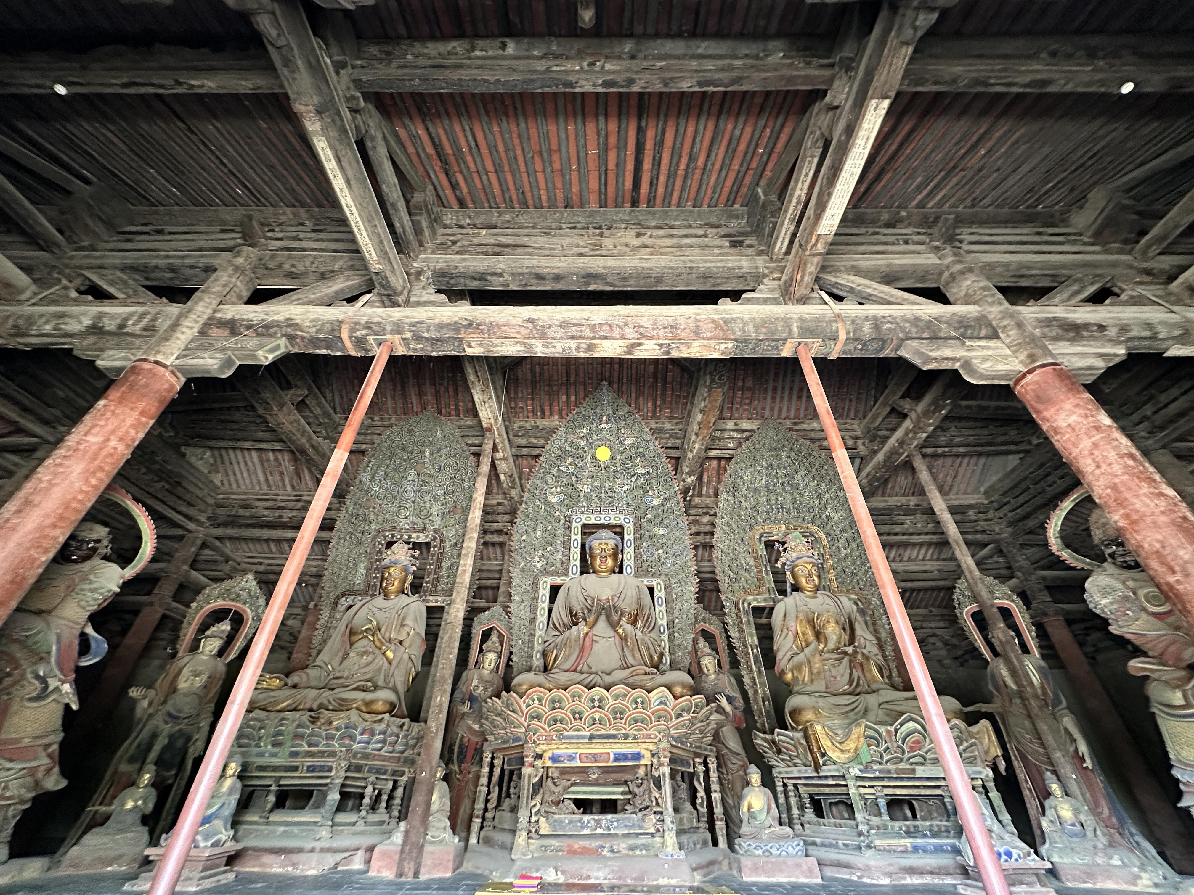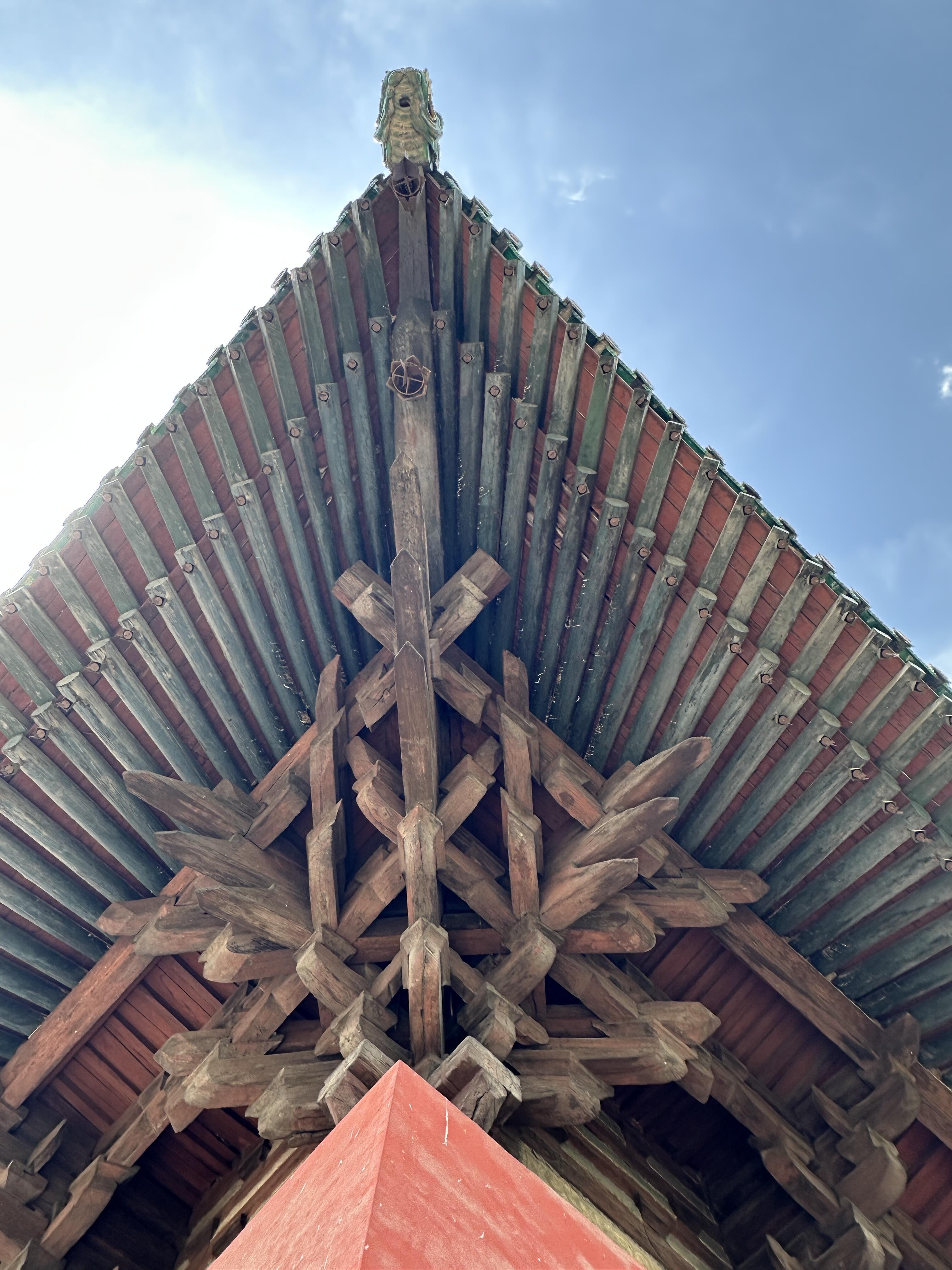现代建筑追求的是高度与奇观,而这些古代木构追求的却是与天地对话。它们的比例、尺度、结构,无不暗合着古人对宇宙的认知。站在这些大殿中央,你会感受到一种奇妙的平衡——不是人与建筑的平衡,而是时代与时代的默契。我们总以为古代是落后的,可当你仰头看着那些不需要一颗铁钉就能支撑千年的梁架,看着那些历经地震依然稳固的构架,究竟谁更智慧?