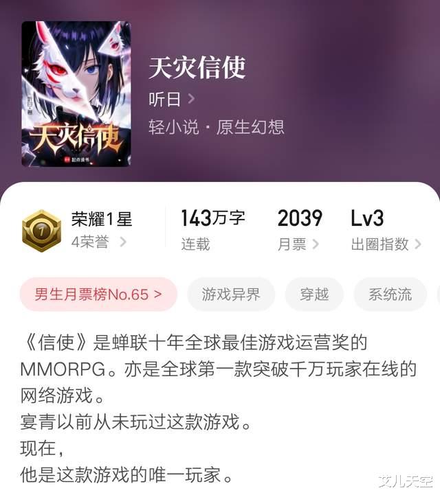 一个游戏关卡策划穿越到自己设计的游戏副本世界的故事。我也没看太多,就看到读者反馈听日除了一如既往写崩了战力外,连擅长的感情戏也退化了。