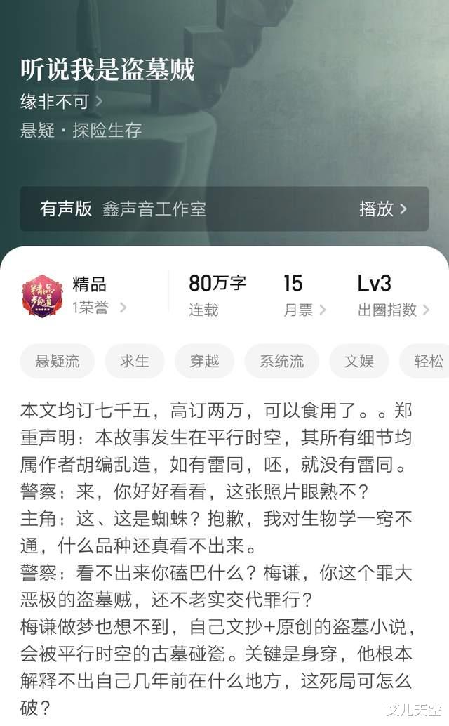 主角文抄了几本盗墓文大获成功,都改编影视剧了,就是没想到平行世界不讲道理,真有大墓跟自己小说里的一样,结果自己被当成盗墓贼抓了起来。