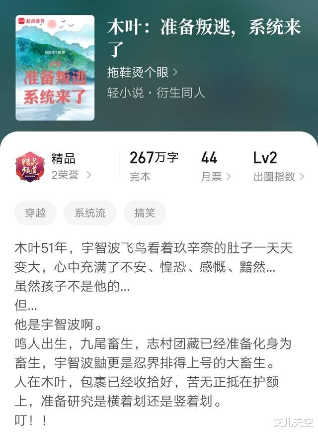 3、《木叶:准备叛逃,系统来了》267万字完本