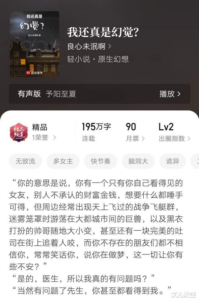 ⑫良心未泯啊《我还真是幻觉?》195万字11月1日完本,精品线上的成绩,多写脑洞文。