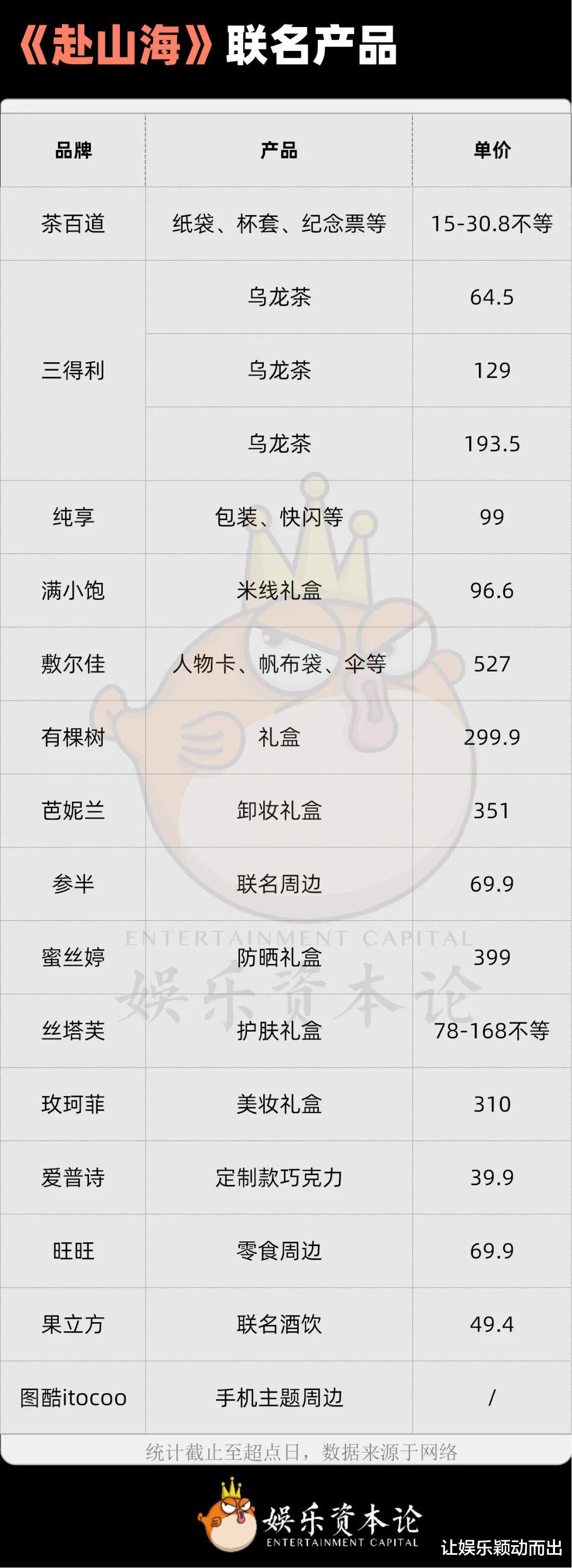 这一系列良好的播出成绩,使得《赴山海》不仅仅停留在一部影视作品的层面,而是迅速延伸到了周边产品和联名合作,成为了现象级的IP产品。