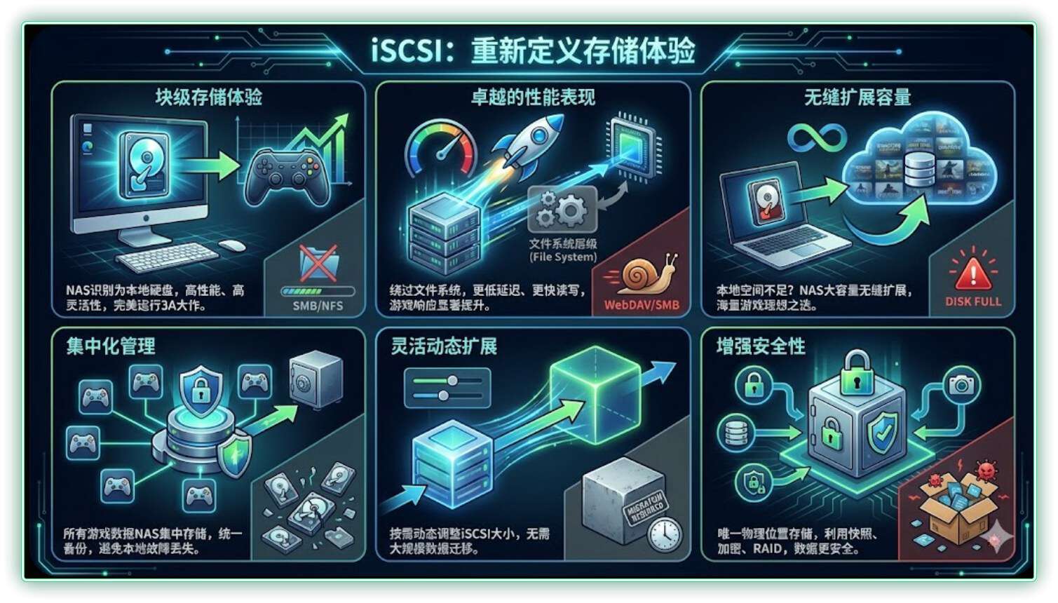 想要把 NAS 变成真正的“游戏仓库”,iSCSI 是唯 一 解。与受限颇多的 SMB 挂载不同,iSCSI 会让系统将 NAS 硬盘识别为“本地硬盘”,因此你可以随心所欲地将软件、游戏安装其中。