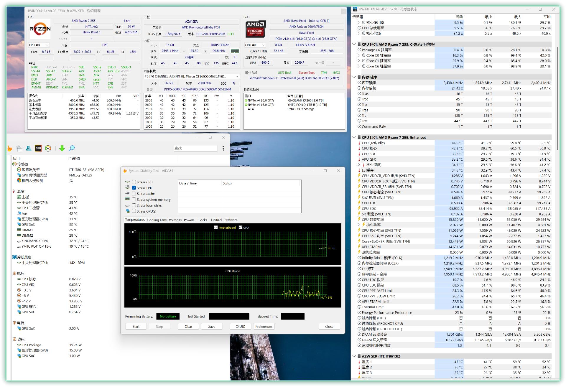 总结:更务实的“完全体”小钢炮相比主打 AI 语音交互的 SER9 Pro,SER9 Max 显然更懂硬核玩家的需求。虽然去掉了麦克风模组,但它换来了更具实用价值的 原生万兆网口,彻底解决了迷你主机的存储短板,更让生产力用户和游戏玩家都能更好的利用 NAS 来解决诸多需求。同时,它舍弃板载内存回归 双 DDR5 插槽,不仅升级灵活,更带来了 2299元起(准系统) 的性价比体验。配合 R7 H255 的 65W 强劲释放与 MSC2.0 的“无感”静音表现,如果你对网络效率与自由扩展有需求,那么,SER9 Max 无疑是个相当不错的选择