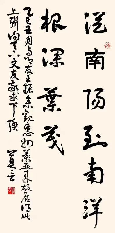 而结尾的“根深叶茂”更是起到画龙点睛的效果,极大提升此联的精神价值属性。