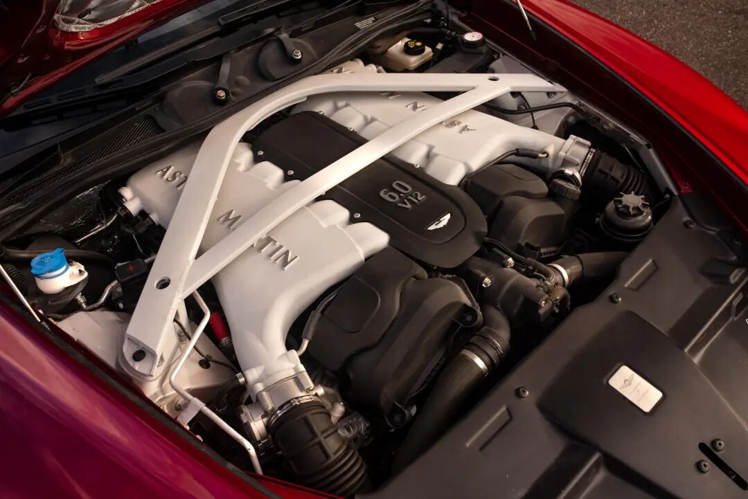 发动机盖下面是一台5.9升阿斯顿·马丁V12发动机,一般标成6.0升。这款发动机2001年就推出了,属于阿斯顿马丁V12系列,在福特的德国科隆发动机厂组装,整车在英国沃里克郡盖登的工厂生产。Taraf的发动机比标准版阿斯顿5.9升V12调校更强一点。变速箱用的是采埃孚的八速“Touchtronic III”自动变速箱。