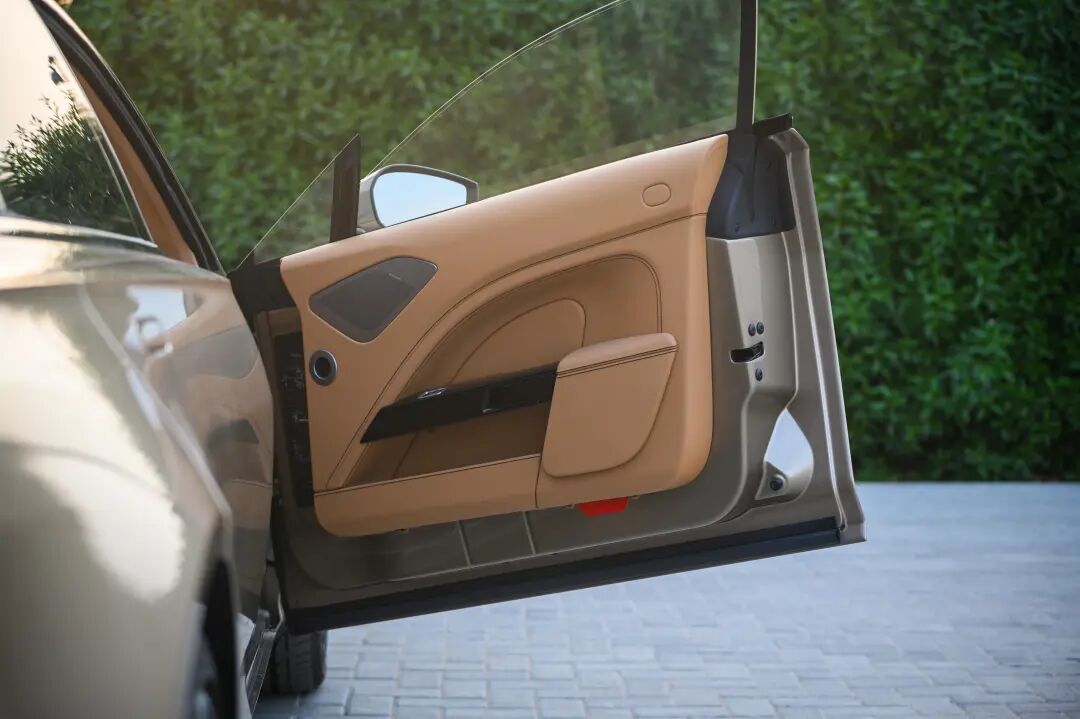 Lagonda Taraf的内饰和外观一样讲究,配置豪华,科技功能也多。座椅是真皮包覆,有阿斯顿·马丁当时常用的菱形缝线。内饰可以定制,比如木饰、皮革颜色、中控配色都能改。音响是标准1000瓦的Bang & Olufsen,还配了套“先进娱乐系统”。