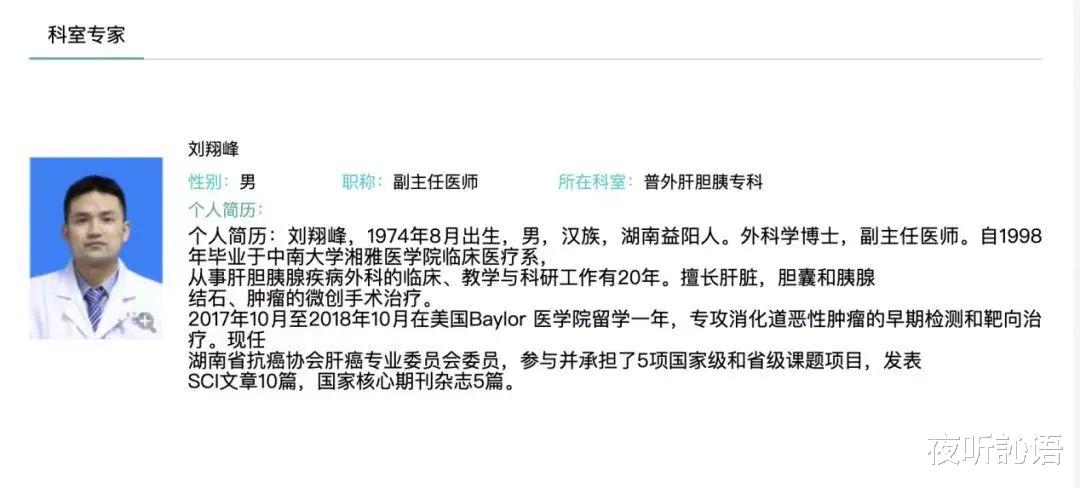 刘翔峰毕业于中南大学湘雅医学院,随后一直从事肝胆胰外科临床工作,2018年,刘翔峰曾留学美国研修消化道肿瘤的分子生物学基础研究、基因检测及治疗。