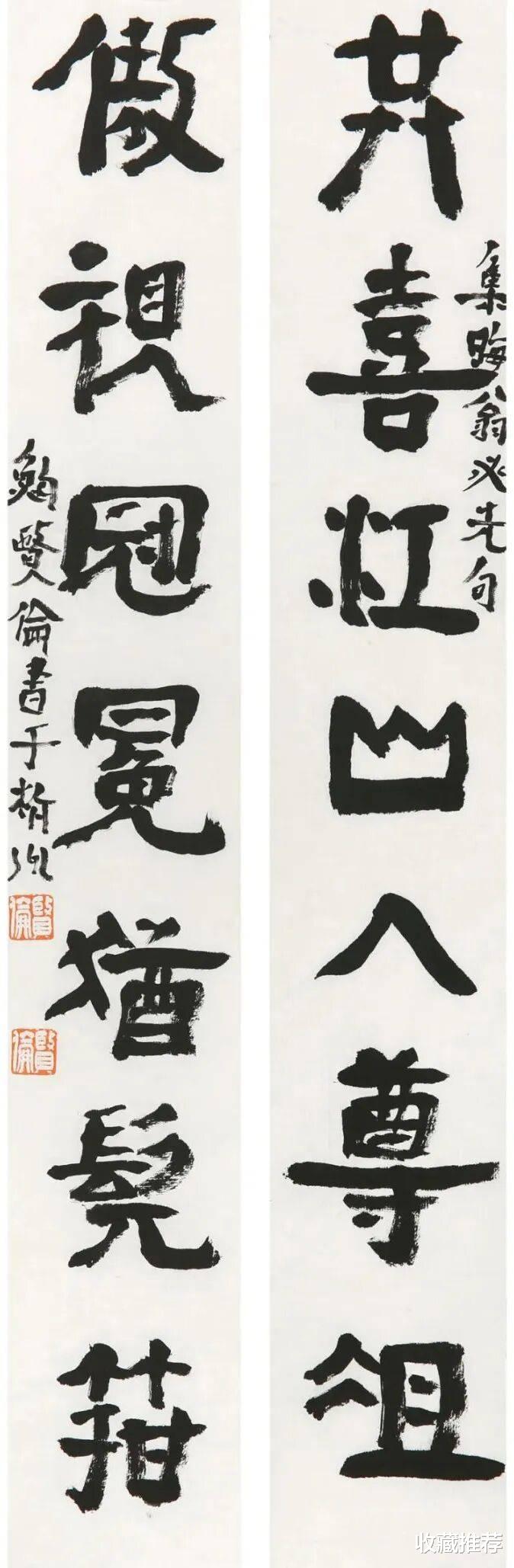 ◎隶书对联《共喜江山入尊俎 傲视冠冕犹髡钳》59cm×9cm×2