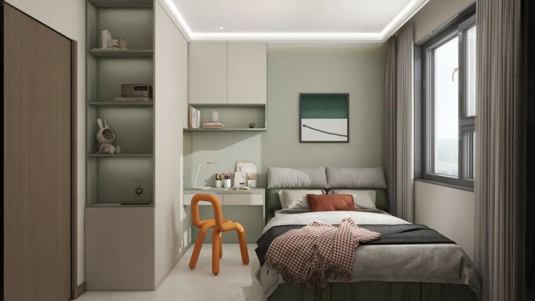 次卧:雅趣的小天地👶新中式没端“老气”的架子浅绿墙面+木色收纳接住了小朋友的童趣内嵌书桌连学习区都省了空间既保雅调的柔和又能让孩子在这撒欢温柔的家连童趣都裹得刚好