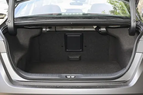 行李舱容积为556L,实际使用时放入三个24英寸行李箱后,剩余空间还能容纳几个随身背包和儿童推车,满足家庭短途出游的储物需求。行李舱开口较低,女性家人放置较重的行李箱时也不用过分用力。车内的零散储物空间设计也很贴心,中央扶手箱内部空间规整,能放入两瓶矿泉水和一部平板电脑;门板内侧的储物格可容纳手机和折叠雨伞,前排座椅背部还设有独立手机置物袋,方便后排乘客放置物品。可开启全景天窗的面积不小,打开后能让座舱内更显通透,后排乘客也能获得较好的视野体验。雨天时,天窗的遮阳帘关闭后,车内光线不会过暗,乘坐感受舒适。