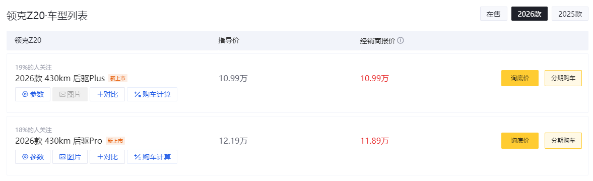 那么在这其中,比较典型的案例有领克旗下的“Z20”,其作为一台定位A级尺寸的纯电SUV,在刚刚上市之初,以及到今年的4月份,基本上处于一个高销量的状态,但从5月份开始,领克Z20的销量就陷入了持续下滑的状况。至于原因,个人认为与比亚迪方程豹钛3上市有直接关系。所以为了进一步的提高领克Z20的被关注度,该车最近上市了两款430公里续航的低配版,起步价从之前的13.59万元直接降到了10.99万元。