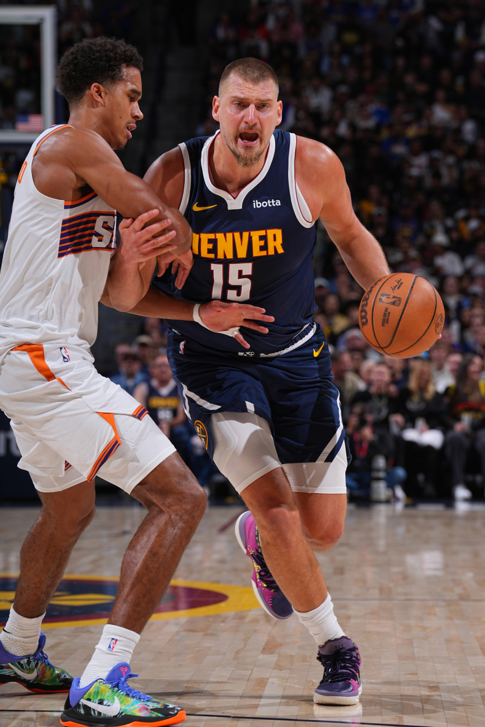 首节比赛中,约基奇没有任何出手,他担负起了串联球队的工作,连续给戈登、穆雷等队友送出好球,仅首节比赛就送出了足足7个助攻,同时抢到3个篮板2个抢断。次节比赛中,约基奇完成全场比赛第一次投篮命中,随后造成犯规两罚全中。值得一提的是,约基奇本节再送4个助攻,仅上半场便达成助攻上双。此外,在一个防守回合中,约基奇因为拉拽邓恩,罕见吃到一次一级恶犯。