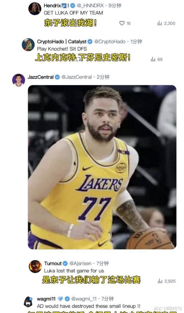 从侧面来看,湖人球迷中不少人对此次交易心生悔意。究其核心,争议点聚焦在东契奇身上,他们觉得东契奇这样的赛场表现难以令人满意。不过,也有部分理智的湖人球迷指出:“不能以拉塞尔的标准去要求东契奇,必须给予他应有的球权。”然而,马上就有其他球迷回复予以抨击:“卢卡·东契奇简直一无是处。”