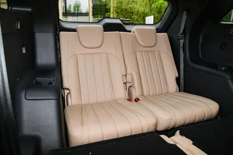 在空间表现上,捷途X70L堪称同级别中的佼佼者。作为一款支持5座和7座可选的车型,其采用了2-3-2的座椅布局,旗舰型版本更是支持32种座椅组合模式,灵活性极高。实际体验中,以一位身高180cm的体验者为例,前排座椅调整到合适位置后,头部和腿部空间均非常充裕,头部有一拳以上的余量,腿部空间也接近两拳。二排座椅同样宽敞,身高180cm的乘客坐入后,膝盖前仍有约一拳半的空间,配合可调节的靠背角度和131°无极电调功能,长时间乘坐也不会感到局促。三排座椅虽然空间稍紧,但对于短途出行或儿童乘坐来说已经足够,头部和腿部仍有一定余量,整体实用性不错。此外,五座版本后备箱容积为732L(含74L下沉空间),后排放倒后更可扩展至1708L,装载能力令人满意,无论是日常家用还是全家出游都能轻松应对。