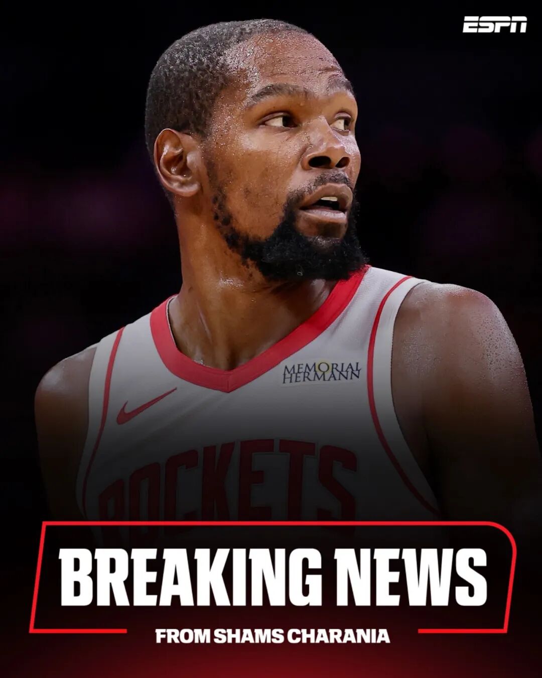 来自名记Shams的最新报道:杜兰特与火箭达成2年9000万美元续约合同,这份合同第二年(2027-28赛季)为球员选项。