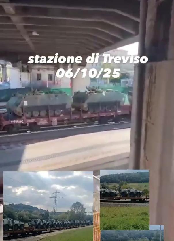 铁轨在深夜发出沉闷的金属碰撞声。 那不是普通的货运列车。 车厢里闪着冷光的,是意大利VCC-1装甲车的钢铁车身。 在特雷维索车站附近,人们拿着手机拍下这一幕——车厢整齐排列,履带蒙着灰尘,像一支从坟墓中被唤醒的军队。