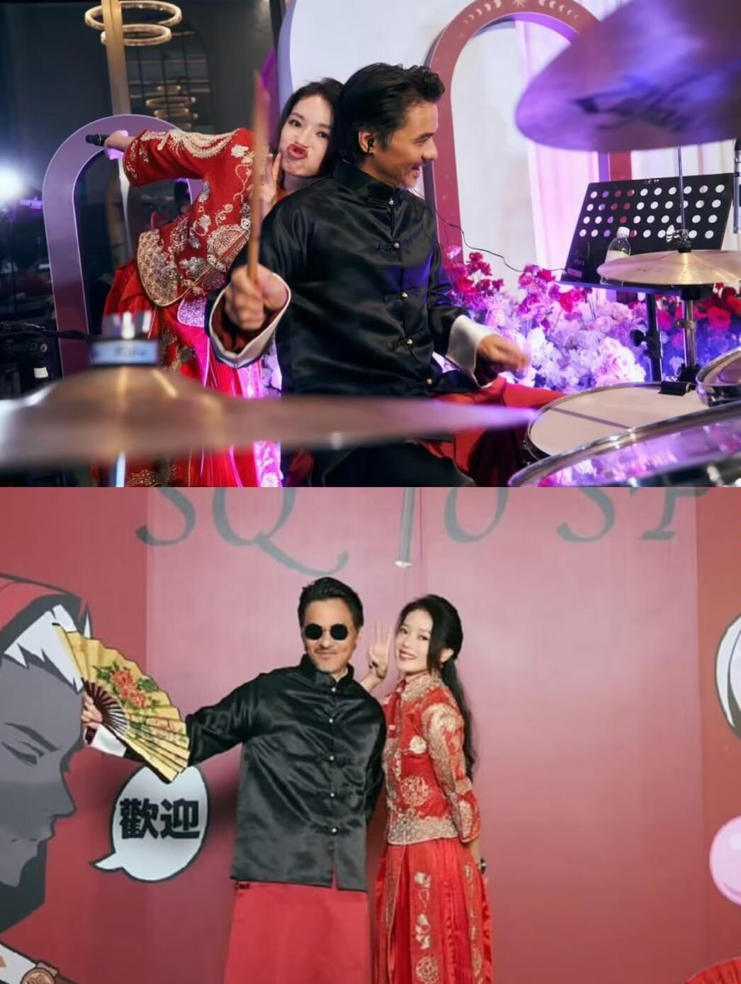 冯德伦默契配合舒淇做出可爱动作,场面温馨动人。