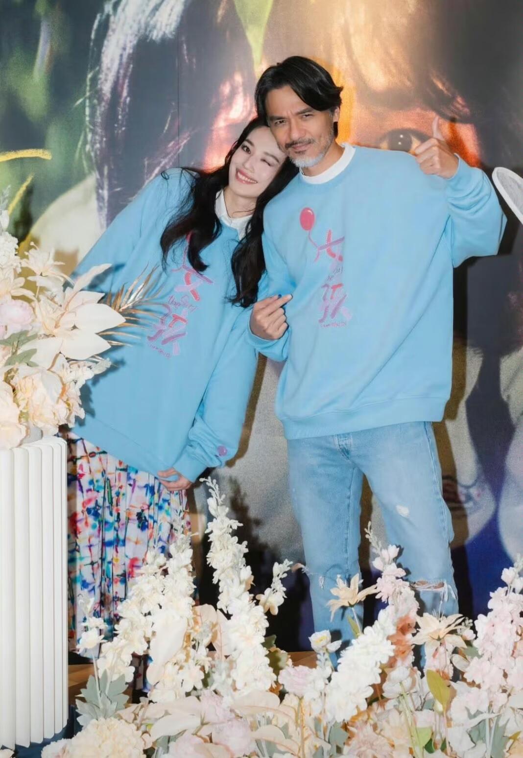 现场,丈夫冯德伦惊喜助阵,身着同款宣传服装,两人在红毯上互动甜蜜,眼神始终追随彼此,爱意满溢。