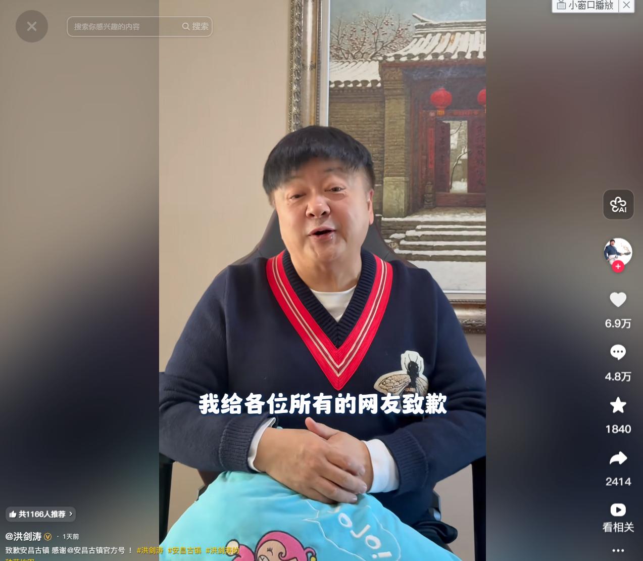 洪剑涛公开发表道歉视频,被网友吐槽:晚节不保、体面尽失。