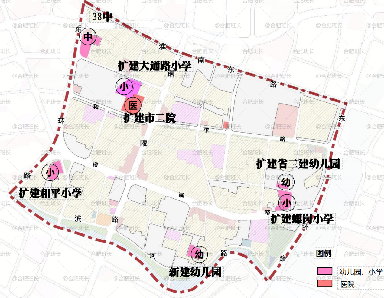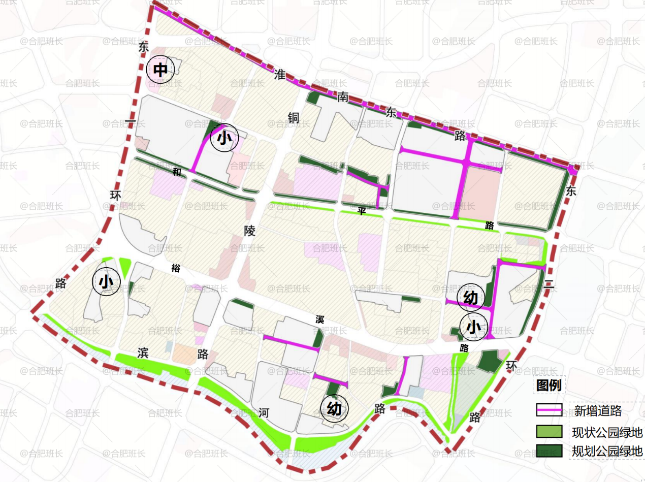 总体上,拟通过本轮城市更新规划幼儿园新建1所、扩建1所,小学扩建3所、中学扩建1所;医院扩建1所;全面补齐公共服务短板,提升居民幸福感。提升改造2.5公里南淝河滨水景观带,新建14处口袋公园,人均公园绿地面积由1.06平方米提高至1.76平方米,公园绿地覆盖率由64%提高至100%。提升东一环、淮南东路、裕溪路等重要道路沿线的城市品质。