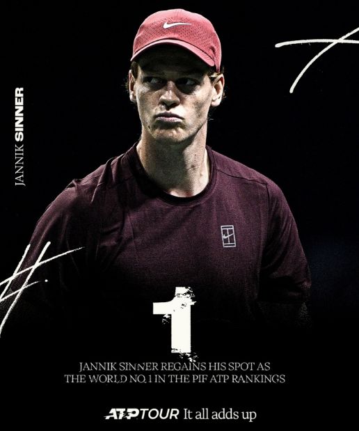 其五,辛纳下周超越阿尔卡拉斯重返世界第一。