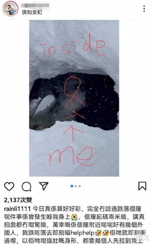 回顾整个事件,李彩桦原本是去日本享受滑雪假期,没想到却在滑行过程中意外“踩空”,整个人瞬间消失在厚厚的雪层之下。