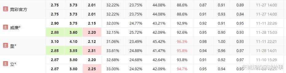 那么来看看数据,客2区,以目前两队的实力、定位与排名,合理,中间项的3.75很强势,结合另外两家来看,对于莱比锡的态度越来越强,极力营造莱比锡的必胜信心,那么咱们再看基本面,莱比锡与门兴的差距有没有这么大?首先德甲的主场优势是不能忽视的,其次本赛季莱比锡的磐能并没有那么强,莱比锡状态是不错,但门兴同样不差,所以高起的中间项我认为就是过犹不及,过于强调目前莱比锡的成绩与人气,综上,本场阿拐选择支持门兴捍卫主场。