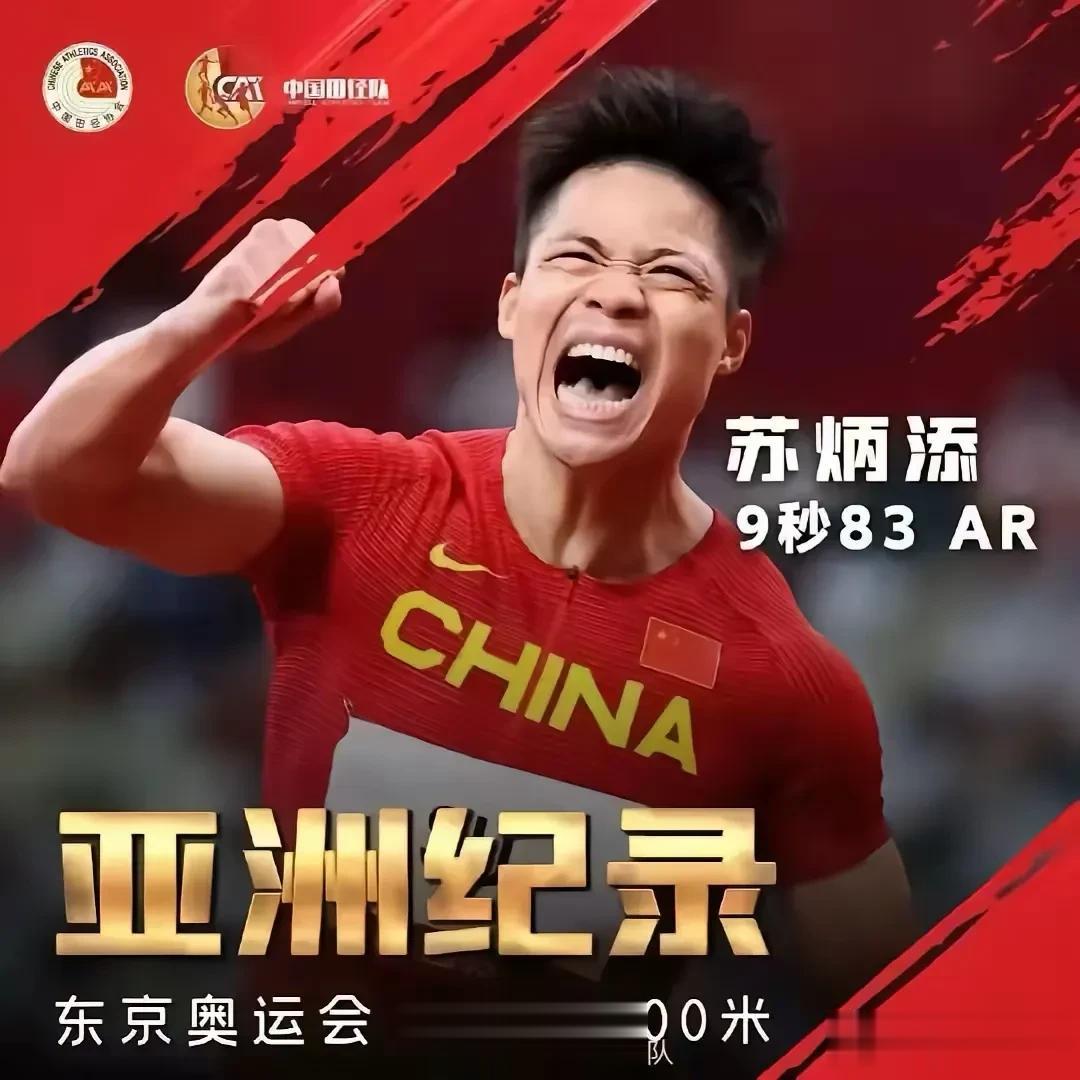 第一个田径男子百米亚洲纪录9秒83苏炳添;