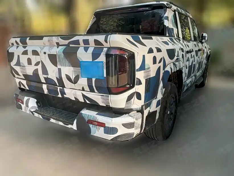 尾部就是典型的皮卡风格了,两侧是大尺寸的多边形造型尾灯,四周的线条也很硬朗,契合了新车野性的定位。