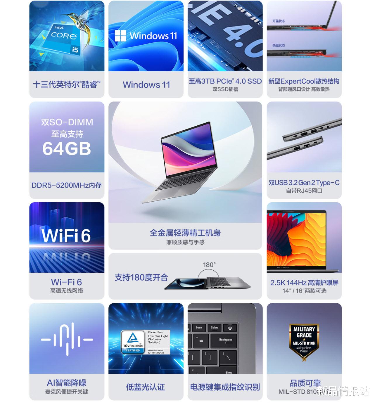 全金属轻薄精工打造的机身,不仅锻造出轻奢质感,更在低调中彰显出独特的锋芒。180°全平开合的设计,让多人协作、团队分享变得一展无余。2.5K高清分辨率搭配144Hz高刷新率,画面丝滑如绸缎,色彩精准如真,长时间办公亦不伤眼,视觉体验与健康完美兼顾。