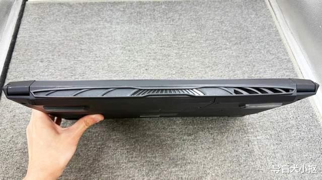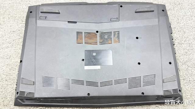 至于机身d面,也是同一种风格工艺,拼接痕迹明显。底壳虽然是一块完整的底板,但参杂了多处镂空部分,掌托处扬声器位置是镂空的,转轴处可拆卸的电池舱盖也是镂空的。不仅如此,d壳的形状也很奇葩,还有凹凸的过渡纹理,设计时完全没有考虑一点颜值。从功能上看,T6Ti-X7的d壳完全是为了散热去设计,进气孔断断续续排列,尺寸小,固定螺丝孔位横竖布局,孔径大且深。电池仓盖还是可拆卸的布局,扣开后,大号的模组赫然在列。