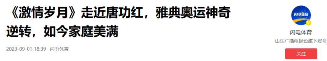 2023-09-01 18:39 闪电体育 《激情岁月》走近唐功红,雅典奥运神奇逆转,如今家庭美满