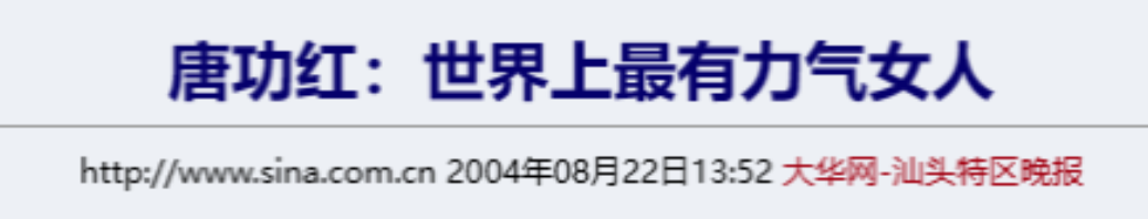 2004年08月22日13:52 大华网-汕头特区晚报 唐功红:世界上最有力气女人