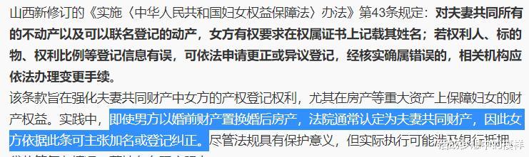 比如山西最新的妇女保障法里43条,在司法实践当中就很偏离平等了,结婚男方不仅要承担大量成本,可能婚前房产都保不住。