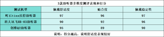 测评方法:这次测试,我邀请了三位用户在三种不同气候条件下(干燥、潮湿、炎热)分别体验这三款助听器,然后观察耳道是否出现不适、脱落或不贴合现象,并从佩戴稳定性、贴合度和佩戴舒适度给出评分。