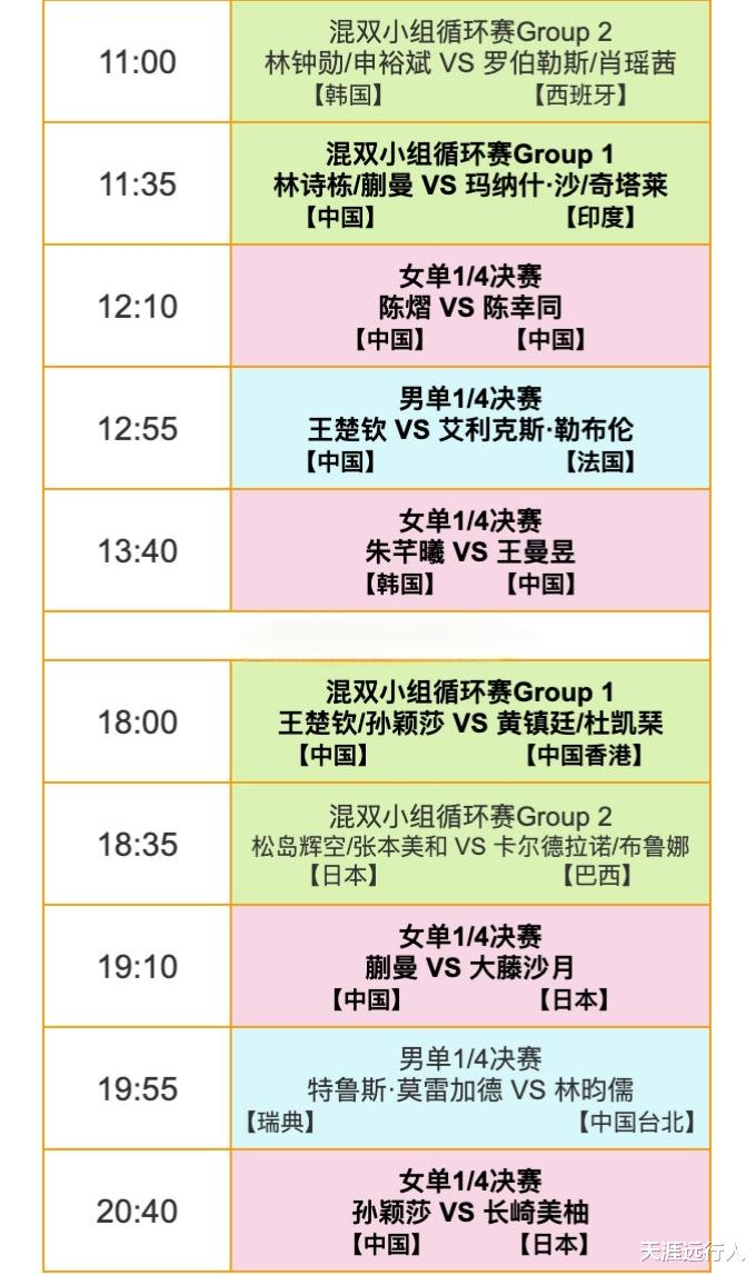 男单1/8决赛后半程四场战报
