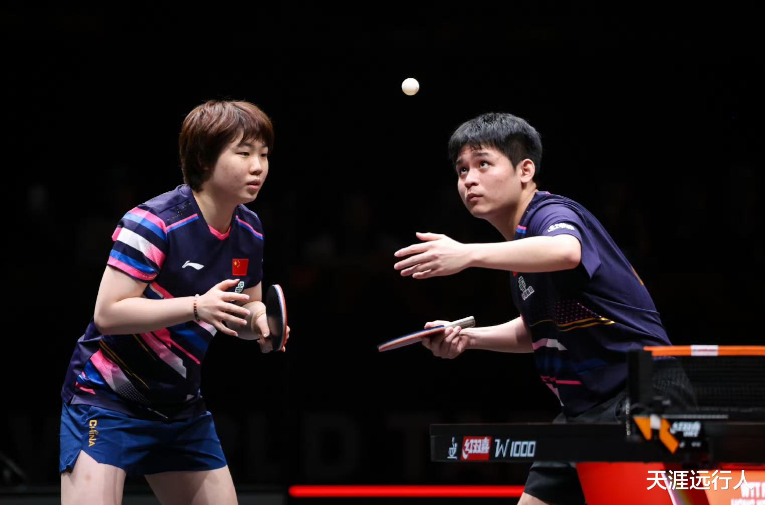 国际乒联外卡、国乒莎头组合王楚钦/孙颖莎,以3-0(13-11,12-10,11-6),战胜世界排名第一的林诗栋/蒯曼。