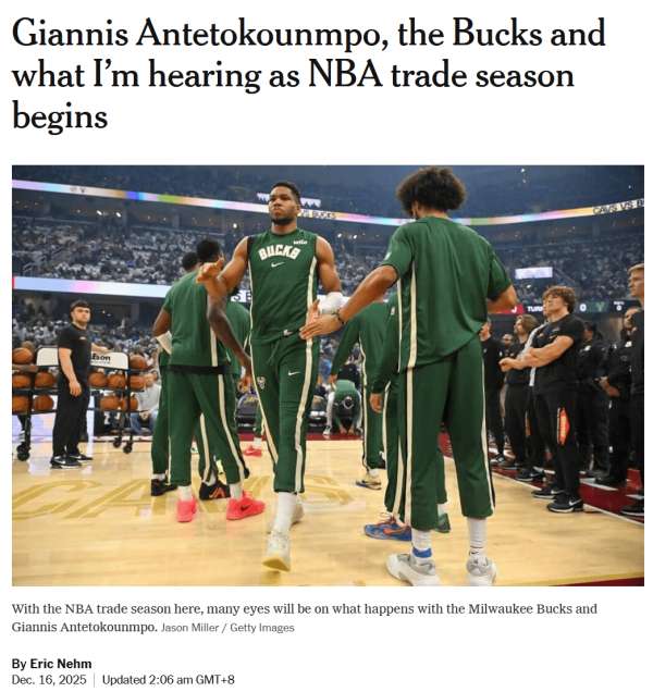 据名记Chris Haynes报道,字母哥对关于他的各种交易传闻感到不安。Chris Haynes直言:“根据一周前我与他的对话,他表示对这些传言感到不适。他强调流言并非源自他本人——多数相关讨论都来自他的代表团队。”