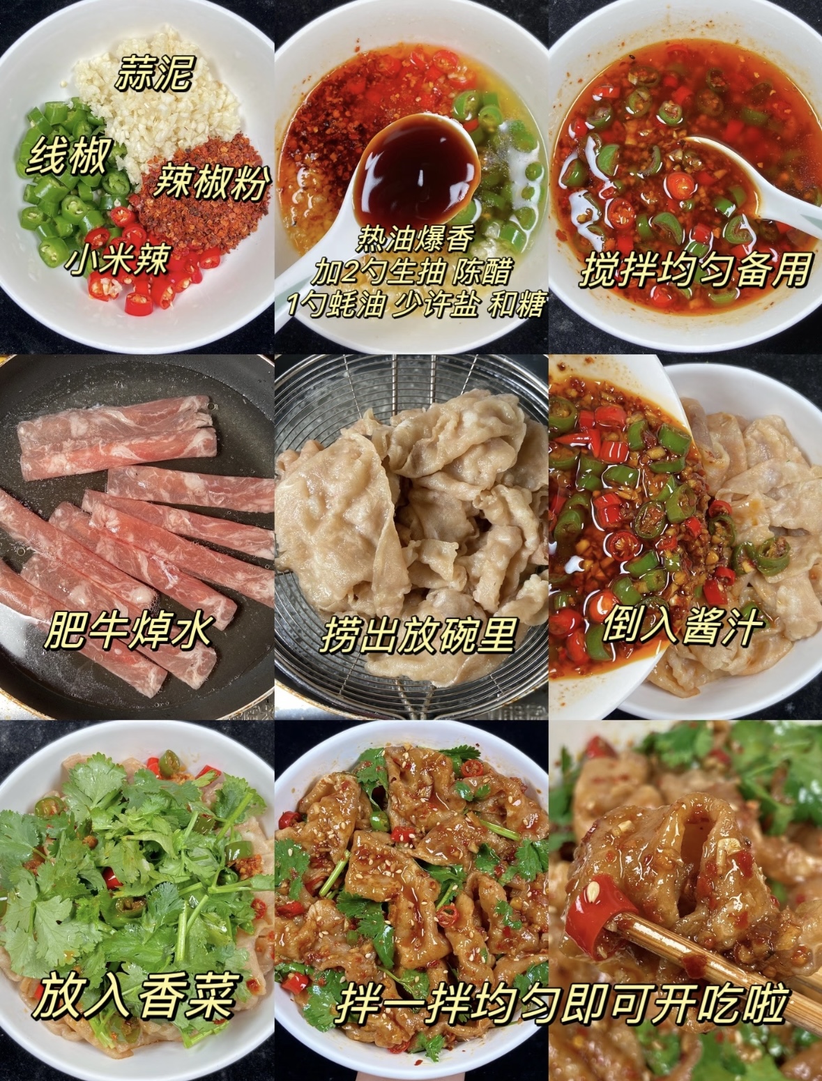 第一口建议站着吃,因为很可能会跪。肥牛嫩到像在你舌尖化开,香菜的清新把油腻瞬间清零,小米辣的后劲像小烟花“砰”一下在喉咙炸开,酸、辣、鲜、香、脆、弹,六味一体,大脑当场宕机,只剩一个念头:再来一碗。我第一次干掉两碗饭后,抱着锅陷入沉思:为什么这么简单的东西能好吃到破防?后来想明白了——它把“火锅的满足”和“凉拌的清爽”强行组CP,谁吃了不说一句“锁死”!