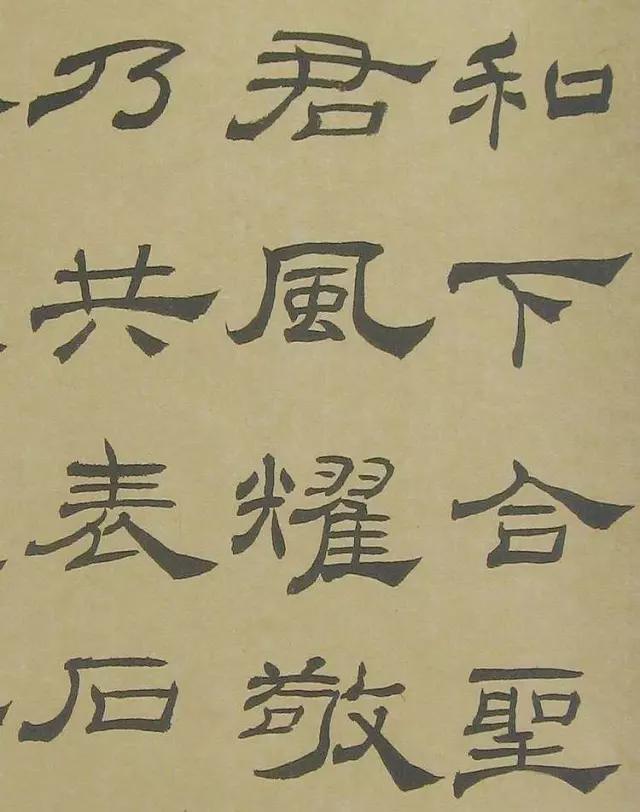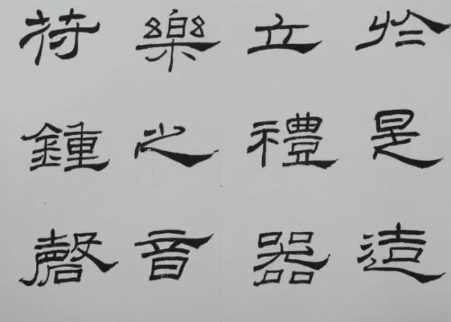 当对《礼器碑》的临习基本形似后,应把重点放在细心揣摩、精心雕琢上,抓住其神韵。在这个阶段就要多分析每个字的字形特点,抓住其特点,可以适当的做些特点强化。