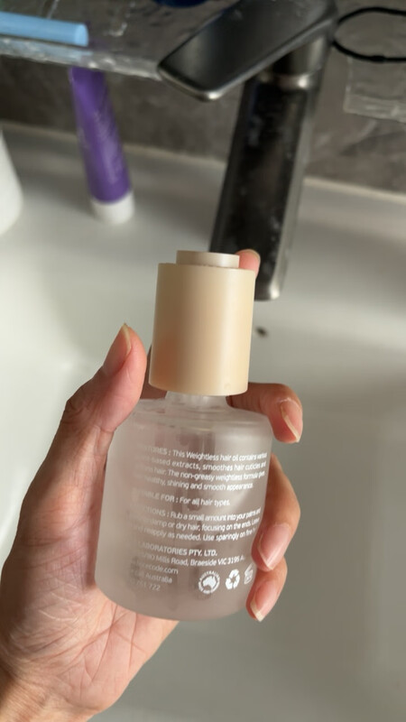 整体还可用,光泽度一般但顺滑度有所提升。好的一点是出门前梳理发丝顺手,不再打结。不好的是干发涂多了有点黏腻。背后的技术是植物角蛋白+精油微分子渗透,能修复受损发芯,同时在发丝表层形成保护膜,缓解干燥和静电,让秀发看起来柔顺自然。